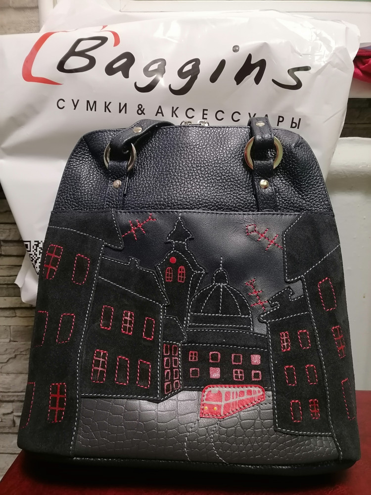 Жаль, что можно поставить всего пять звёзд, оценила бы и выше. Сумка кожаная и при этом лёгкая. Универсальная в использовании, благодаря продуманной системе ручек: одинаково удобно носить рюкзаком и на плече и на руке. Внутри два отделения.